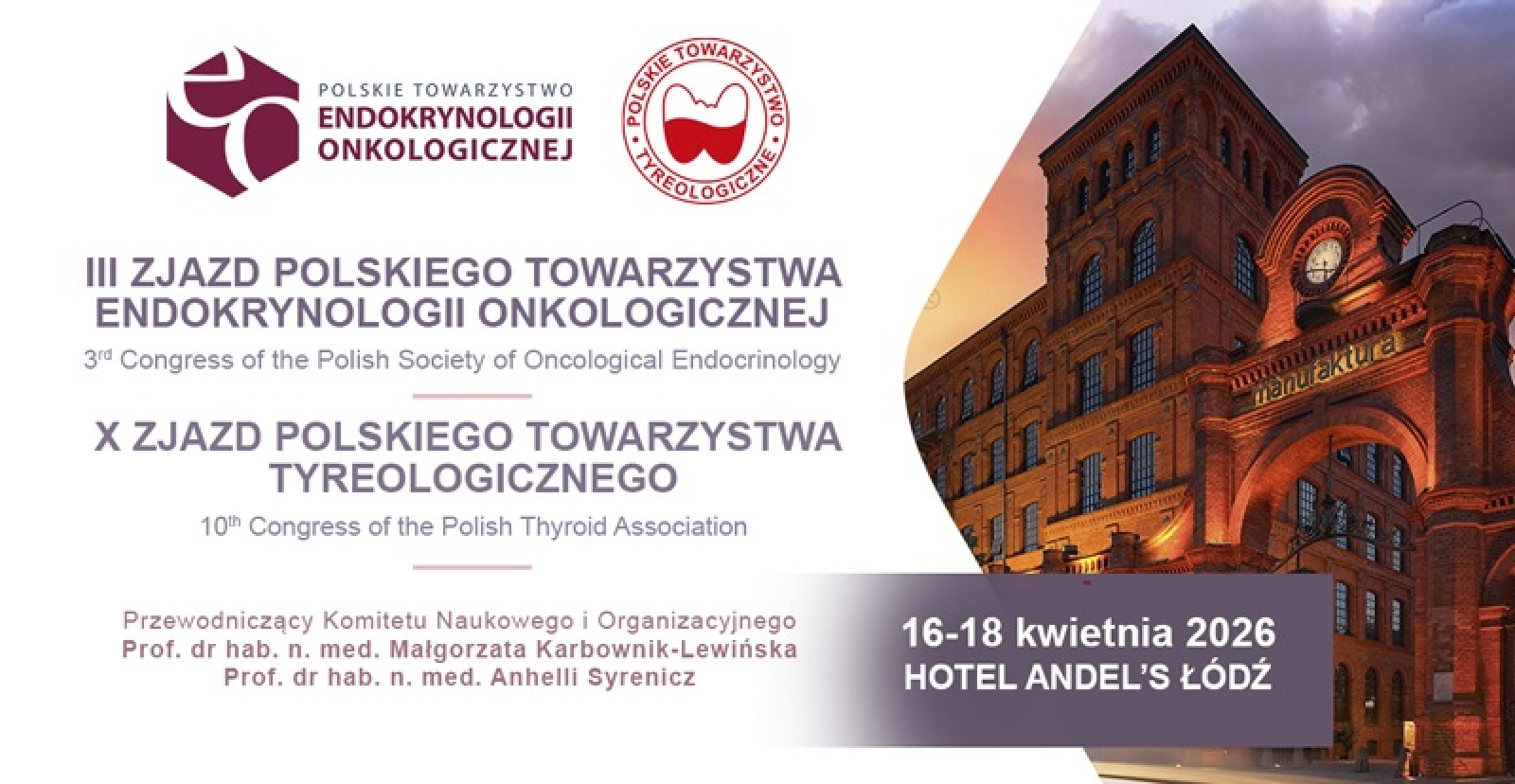 X Zjazd Polskiego Towarzystwa Tyreologicznego i III Zjazd Polskiego Towarzystwa Endokrynologii Onkologicznej odbył się w dniach 16-18 kwietnia 2026 roku w Łodzi.